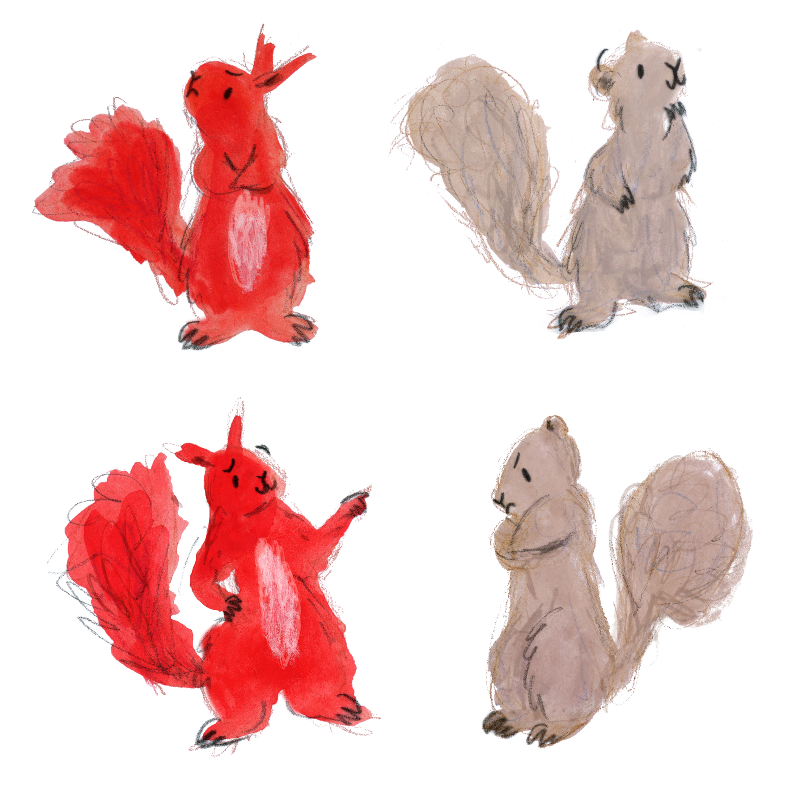 Red and Grey is a picture book story I am developing about two squirrels who agree on everything – apart from whether it’s better to live in the forest or the city!